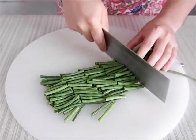 1.秋天到了,天气越来越凉,今天我们就做一个简单又好吃的麻酱豆角。准备一把豇豆角,洗净之后切段。
