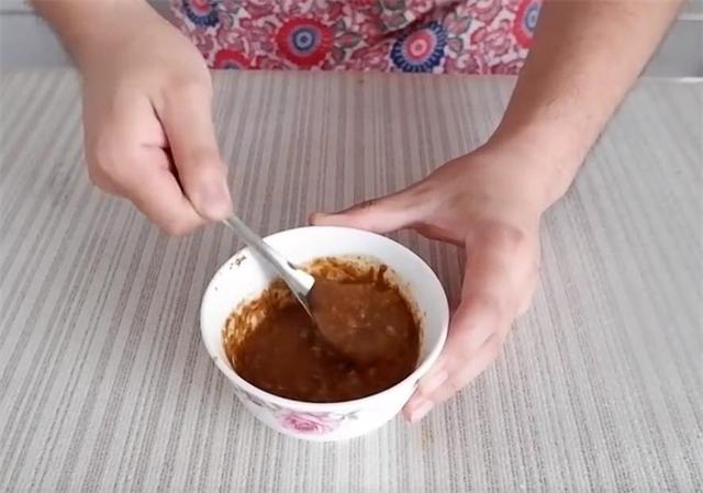 3.这个时间,捣一些蒜泥放入碗中,再来一勺芝麻酱,加入少量的盐,然后加入一勺陈醋,两勺酱油,少量的温水完全搅匀。