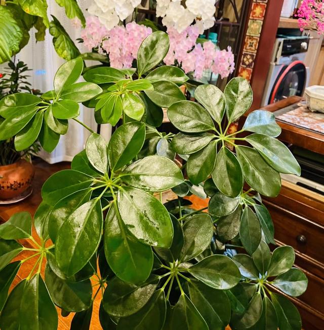 鸭掌木,又称鹅掌柴,是一种非常受欢迎的室内绿植。其独特的叶片形状酷似鸭掌,因此得名。在民间,鸭掌木被视为招财进宝、吉祥如意的象征。 水培鸭掌木同样简单易行。从母株上剪取一段健壮的枝条,去除下部叶片,然后插入清水中。 为了让鸭掌木更好地生长,可以在水中加入适量的营养液。此外,定期更换清水,保持水质的清洁和透明度。在养护过程中,还可以适当修剪枝条,以保持植株的美观和生长平衡。
