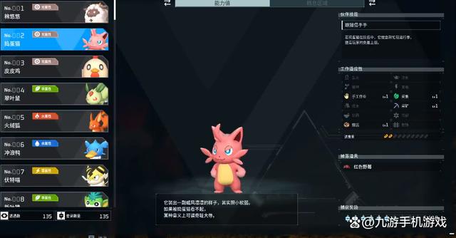 捣蛋猫:头上长了一根角的猫咪,看起来非常的威风,但胆子很小。他的工作适应性有手工作业、搬运、采集和采矿。为什么会给大家推荐这个帕鲁呢?因为只要玩家的基地周围有石脉,他就会自动采集石头输送到基地里面,大家在建立完基地之后,大量的建造都要用到石头,而小小的捣蛋猫就可以满足我们的需求了。在不需要石头的时候,玩家也可以安排他去其他的方向的工作,适用性还是挺广泛的。