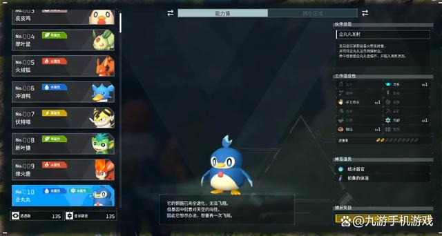 企丸丸:外形酷似企鹅的帕鲁,工作能力也比较全面,有手工作业、浇水、搬运和冷却四个能力。它的浇水能力可以弥补翠叶鼠在种植环节上不能浇水的缺点,用它配合翠叶鼠后玩家就不用再管庄稼,可以完成一个种植收获的闭环。另外它的冷却可以配合冷藏箱来保证食物不会腐败,这在前期玩家精力不足的时候是非常重要的。