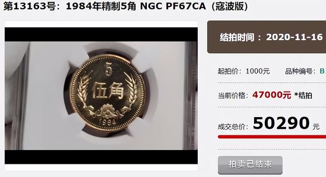 在2020年10月的春秋大拍中,一枚评分达到67分的5角硬币,拍出了50290的高价,足足是翻了10万倍,它也是近几年拍卖成交记录最高的5角硬币之一,那么是什么样的5角硬币能拍出如此高的市价呢?
