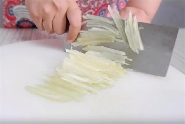 1.网上买了几个雪莲果,今天做一个凉拌雪莲果,清爽好吃,非常不错。我们先把雪莲果洗净去皮,去皮的时候一定要把白色的部分都去掉,洗净之后再改刀切丝,切好后放入水中防止氧化。