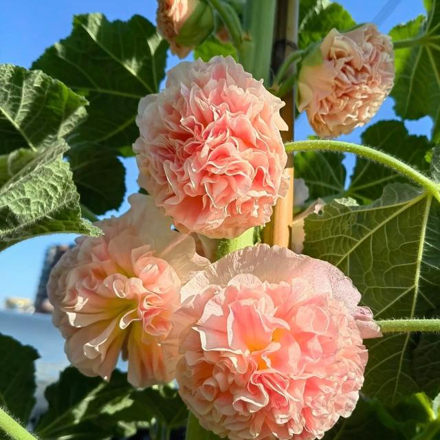 太阳花,仿佛是夏日的小精灵,每个花朵虽小,却能散发出能量,让人看了心情无比愉悦。彩色的花朵平铺在地面,就像五彩斑斓的地毯,给环境增光添彩。它的生命力旺盛,喜欢光照,超级耐旱,即便不管,也能开花不停,新手养花就选它,很难养死。 蜀葵