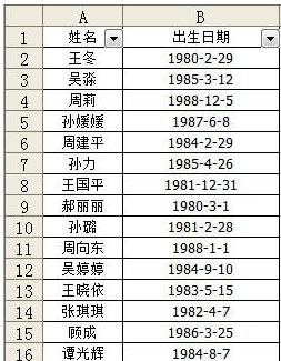 excel中筛选出生日是某月某日的方法,步骤如下: 假如姓名在A列,出生日期在B列,以Excel 2003为例介绍如下。