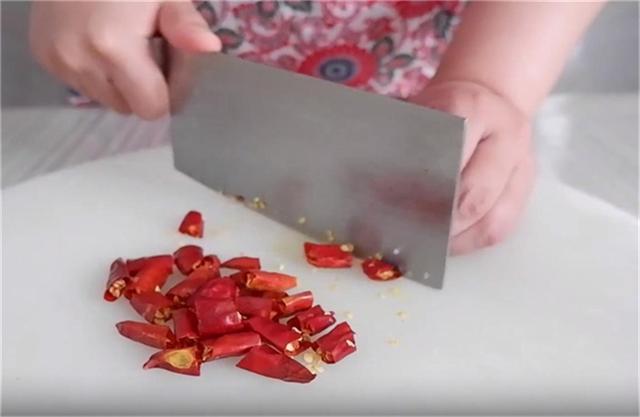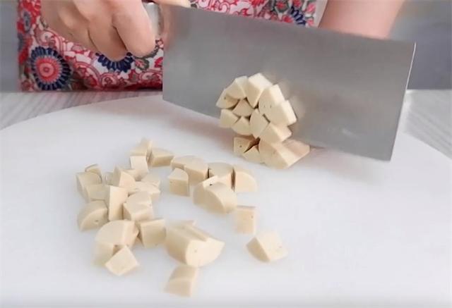 2.再把一根素火腿肠切成丁。