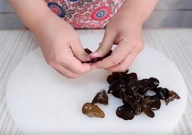 3.少量的木耳洗净后撕一下。