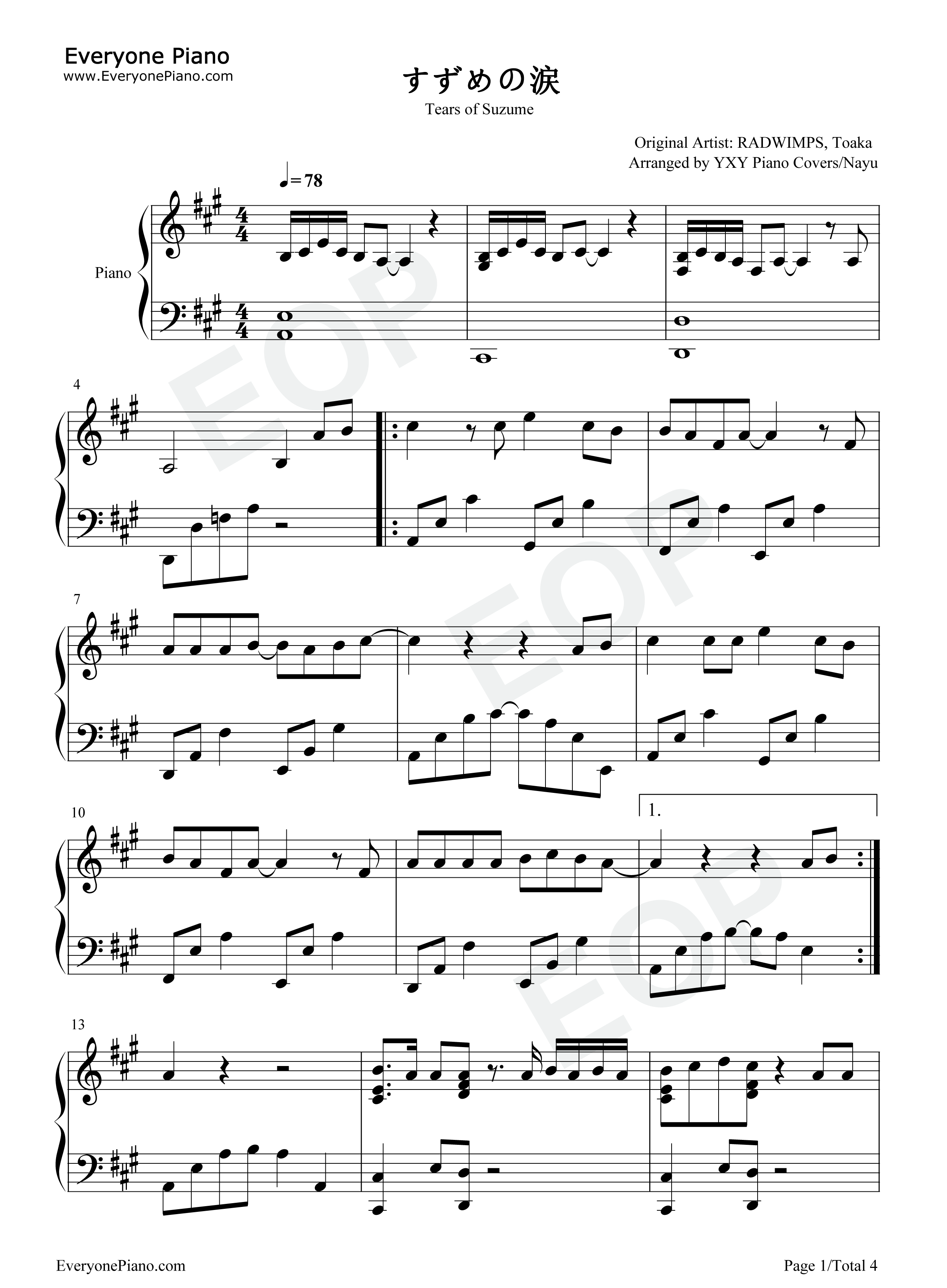 当前位置:首页>娱乐>すずめの涙钢琴谱-RADWIMPS