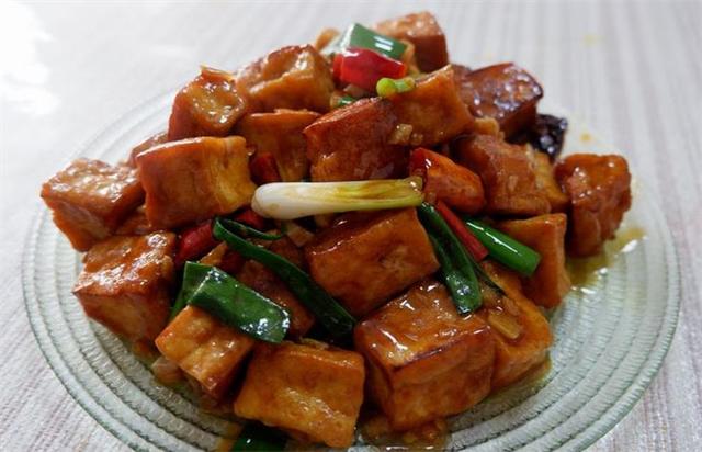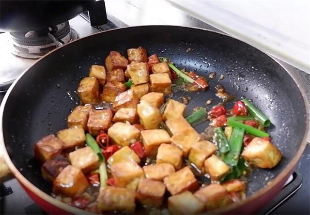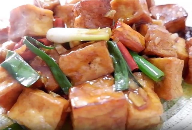 准备食材: 老豆腐、食用油、蒜末、干辣椒段、清水、盐、酱油、素蚝油、老抽、水淀粉 具体做法:
