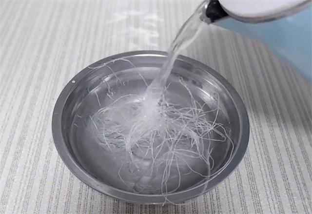 1.朋友们,大家好,今天做一个土豆丝的新吃法——凉拌菠菜土豆丝,非常不错的小菜。首先准备少量的粉丝,提前泡十分钟。
