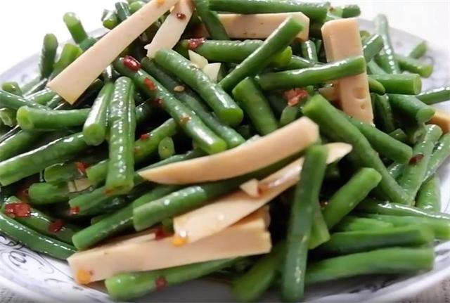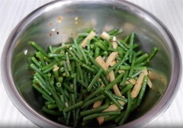 准备食材: 豇豆、素火腿肠、蒜末、盐、食用油、味精、素蚝油、酱油、辣椒油 具体做法:
