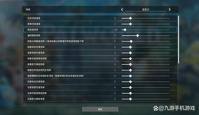 在自定义中能够修改的参数十分之多,包括昼夜的流逝速度,经验值获取倍率等等。和帕鲁和角色自身的相关数据也可以进行调控,包括攻击力、饱食度一类,应有尽有,十分的细致。如果你是一个想要轻松悠哉地体验游戏内容的休闲党,那可以把损失相关的参数调低,减轻自己的生存难度;而你要是一个致力于挑战高难度的高玩的话,那不妨把承受伤害倍率和饱食度等的参数调高,再提高帕鲁的出现倍率到最高指2,尽情体验突破困难,挑战极限的快感。