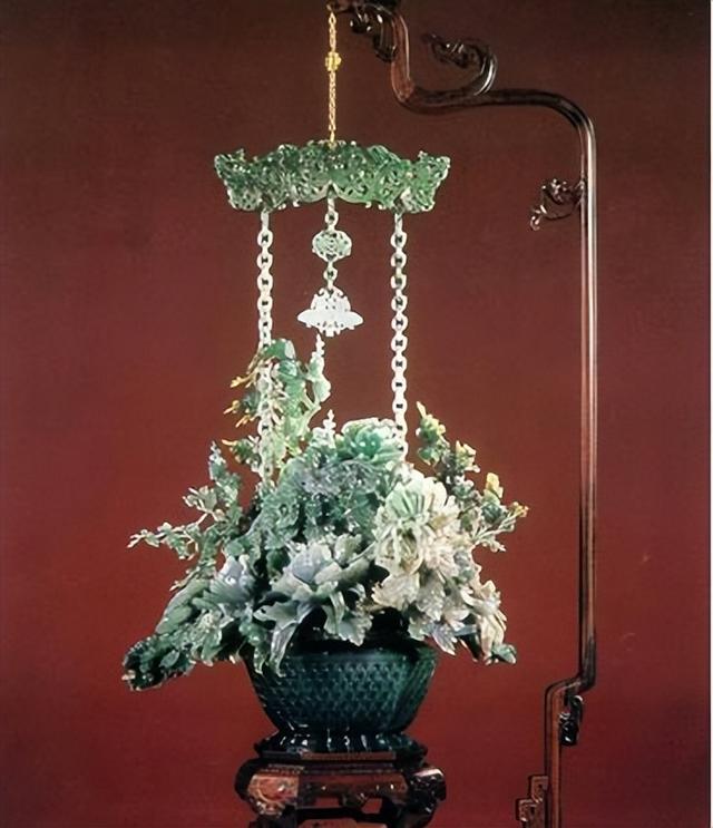 第三群芳揽,高64厘米是世界上最高的翡翠花篮,多个玉雕师花了8个月时间才完成,雕由牡丹、菊花、玉兰、月季、梅花等十多种花卉,相互交叉疏密有致,使用提梁和活动链条,将高度提高了将近一倍。摘自: www.ws46.com