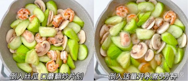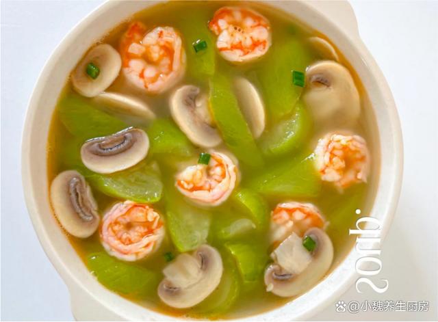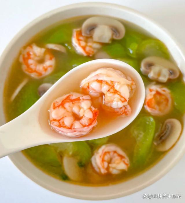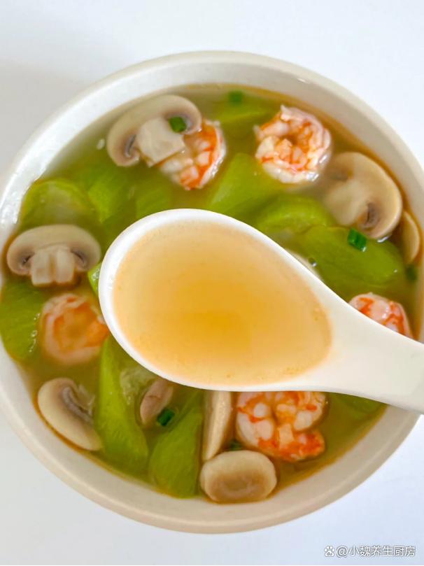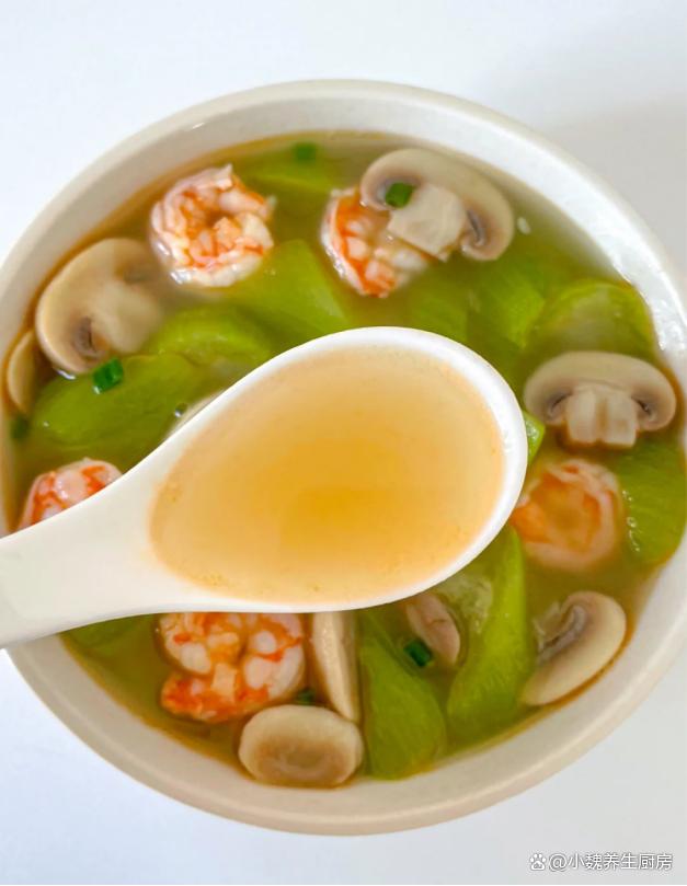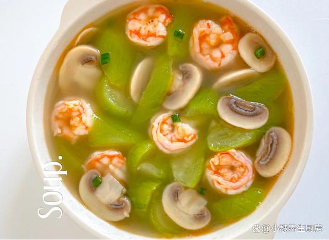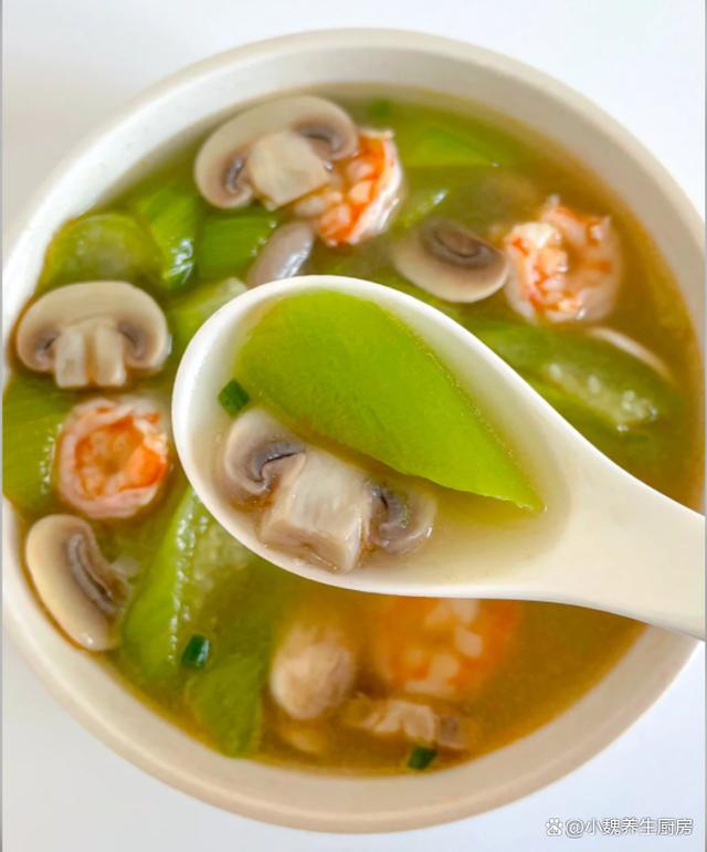 6:加上适量开水煮3-5分钟左右,调入一些食盐和胡椒粉,汤品煮至入味,撒上一些小葱花,焖煮一小会儿,关火盛出,这款丝瓜虾仁口蘑汤就制作完成了,汤品超级鲜美。 丝瓜虾仁口蘑汤的制作小贴士:首先,丝瓜的选择至关重要。挑选时,应选外皮光滑、色泽翠绿且带有自然光泽的丝瓜,这样的丝瓜不仅肉质鲜嫩,还能为汤品增添一抹清新的绿意。削皮时,尽量保持丝瓜的完整性,减少破损,以免过多的汁液流失影响口感。其次,虾仁的处理也不容忽视。新鲜虾仁去壳去虾线后,可用少量料酒和盐轻轻抓匀腌制片刻,既能去腥又能提鲜。下锅前,用厨房纸巾轻轻吸干虾仁表面的水分,这样炒制时虾仁更易变色且口感更弹牙。 再者,口蘑的加入为这道汤增添了丰富的层次感。切片前,不妨将口蘑在清水中稍作浸泡,轻轻搓洗去除表面杂质,然后沥干水分切片。炒制时,先用少量油将口蘑两面煎至微黄,这样能更好地激发出蘑菇的鲜香,让汤底更加浓郁。最后,调味时需注意平衡。丝瓜本身带有清甜,虾仁和口蘑也各有其鲜,因此加盐调味时应适量,避免过咸掩盖了食材的原味。若喜欢,可在出锅前撒上少许葱花或香菜提香增色,让这道丝瓜虾仁口蘑汤更加色香味俱全,成为餐桌上一道亮丽的风景线。 丝瓜虾仁口蘑汤是一款色泽好看的鲜汤,选用新鲜丝瓜,口蘑和鲜虾制作而成,虾仁的肉质鲜嫩,丝瓜非常清甜,解馋解腻,补充维生素和微量元素,让营养更好消化,孩子和老人都爱吃。 摘自: www.ws46.com 丝瓜和这两样煮一锅,汤品特别鲜美,营养全面,秋天一定要多吃它。网友们,你们是否学会这款丝瓜虾仁口蘑汤的做法?(文中的全部图片出自网络)