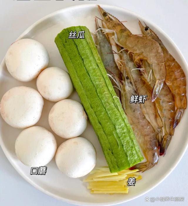 进入秋季的初期,从夏天到秋天度过,炎热的天气已经结束,凉爽的秋天来到了,我们身体经历冷热交替,新陈代谢加快,身体各项机能减退,抵抗力也很差,许多孩子和老人都没有食欲。人上了年纪,皮肤会非常粗糙,想要肌肤保持年轻,多吃高维生素的水果和蔬菜,建议平常多喝一些汤汤水水,让营养更容易被消化。今天准备用丝瓜,鲜虾和口蘑制作一款汤品——丝瓜虾仁口蘑汤,这汤做法非常简单,鲜美好喝,内行人经常喝它。许多人第一次喝这款丝瓜虾仁口蘑汤,一起看一看正确做法吧。秋季,宁可少喝鸡汤,也要多喝这汤,清甜解腻,补足营养度秋!  【丝瓜虾仁口蘑汤的制作步骤】 挑选一些食材:选购新鲜丝瓜一根(丝瓜是一种高维生素C的蔬菜,水分含量特别足,清甜解腻,荤素均可以搭配,可以烹饪成各种美食,胃口不好的人要多吃),选购新鲜大虾150克左右(鲜虾是一种个头很大的虾,肉质非常鲜嫩肥美,富含大量蛋白质和微量元素,可以做成蒜蓉虾和虾仁汤等等),少许食用油,生姜和香葱少许,料酒半勺,冷水和开水适量,新鲜口蘑8个左右,食盐若干,一丢丢白胡椒粉,其他。 具体制作过程: 1:提前准备好新鲜丝瓜,鲜虾和口蘑等食材,先把丝瓜都削皮,切掉多余的部位,洗净切成滚刀块,丝瓜块用盐水浸泡,最后控干掉水分。2:把口蘑去掉根部,菌盖用清水冲洗,反复搓洗干净,洗净切成若干片状,最后挤干水分,备用。3:把大虾的虾尾和虾壳分开,用牙签挑出虾线,虾背开一个口子,将虾仁用料酒去腥,加上食盐和淀粉,腌制一小会儿。 4:姜蒜切碎成细末,香葱洗净切成细葱花,锅底提前预热,加上适量食用油,放入一些虾头,将虾油炒出来,盛出备用。 5:锅底继续加上食用油,放入腌制入味的虾仁,两面都煎至金黄,倒入丝瓜和口蘑,快速煸炒至变软。