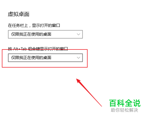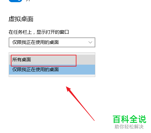 6. 第六步在弹出的下拉列表中,根据下图箭头所指,点击【所有桌面】选项。