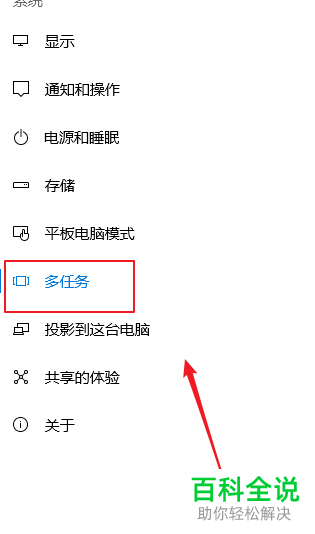 4. 第四步进入【系统】页面后,根据下图箭头所指,点击左侧【多任务】选项。