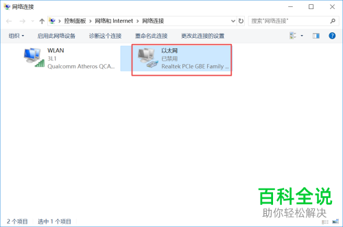 5. 第五步进入【网络连接】页面后,根据下图所示,找到并右击【以太网】图标。