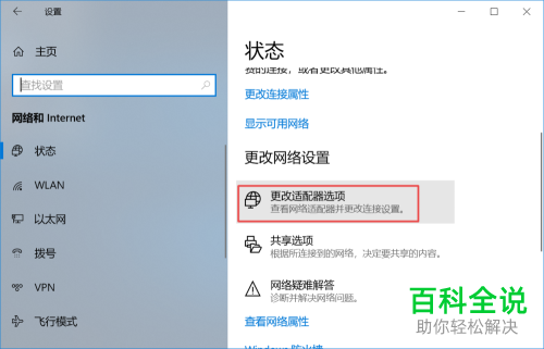 4. 第四步进入【状态】页面后,根据下图所示,点击【更改适配器】选项。