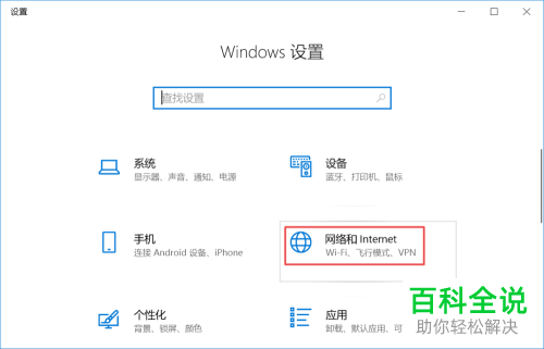 3. 第三步打开【设置】窗口后,根据下图所示,点击【网络和Internet】选项。
