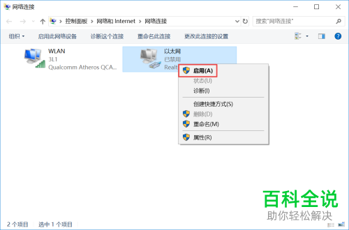 6. 最后在弹出的菜单栏中,根据下图所示,点击【启用】选项即可。