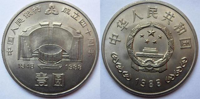 在7月下旬有一枚1988年的一元硬币,拍出了20800,这种一元硬币已经是币王了,受到众多藏友的追捧,你家里有这种1元吗?在1988年为了庆祝中国人民银行成立40周年,我国发行了一枚被藏友称为建行币的流通纪念币。