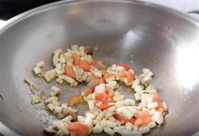 准备食材: 海鲜菇、白玉菇、素火腿肠、西红柿、食用油、蒜末、清水、水淀粉、盐 具体做法: