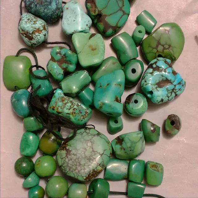 不是说没有好料子,这种料子真的比现在有些松石的料子的质感,包括品相要好的多,而是那个时候真的没有特别好的技术,打磨之后还能不碎不裂的,所以几乎没有几颗像其它材质一样能规规矩矩的特别圆能成珠形的。