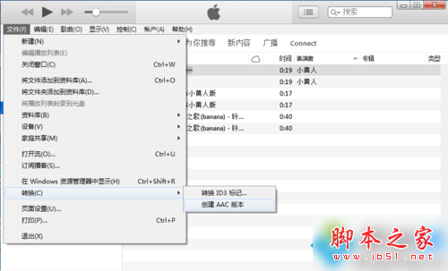 3、创建AAC版本 a. 在歌曲列表选中喜欢的歌曲 b. 同样ituns左上角菜单栏,文件转换创建AAC版本
