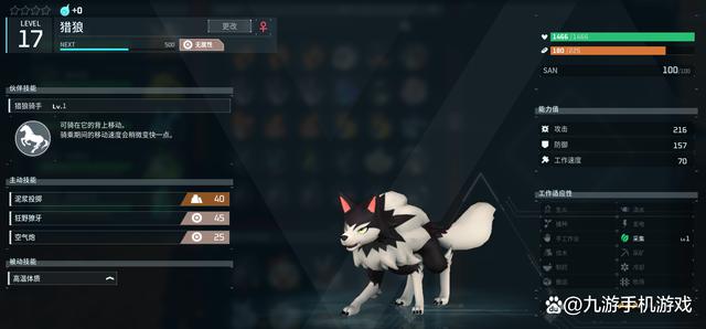 猎狼本体的话它的工作适应性是采集Lv.1,可以帮助玩家收集资源。它的掉落道具是皮革、它的出现时间是白天,可以在草原、森林等地方找到它。