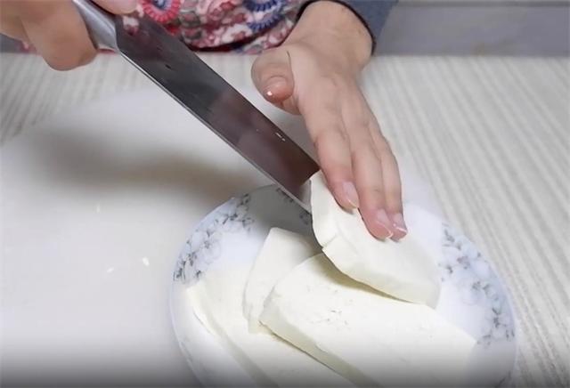 1.老豆腐大变样,今天做简单好吃的凉拌豆腐丝。准备一块老豆腐,切成1厘米厚的片状。