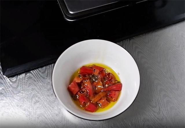 4.再用炸豆腐的油炸香干辣椒和花椒。