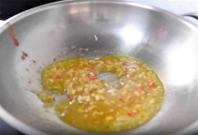 4.再另起锅,加少量的油,下入蒜末、小米辣炒香,再加入盐、十三香、酱油、素蚝油炒匀,最后加入半碗水淀粉,调成浓稠的汤汁。