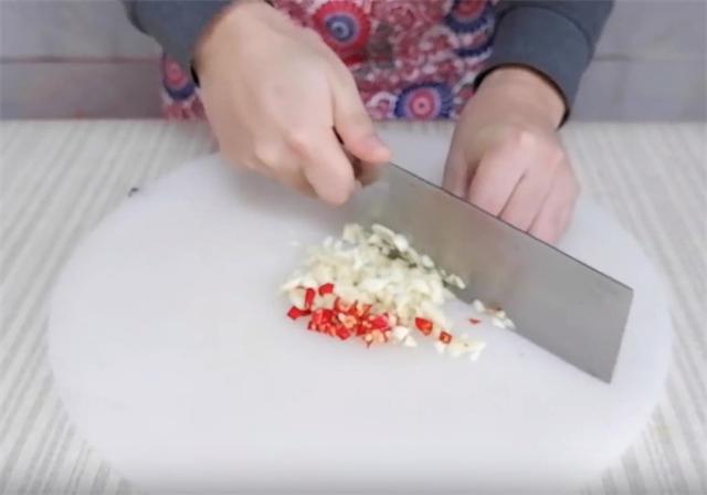 2.再切多一点的蒜末,几个小米辣一起切成碎末就可以了。