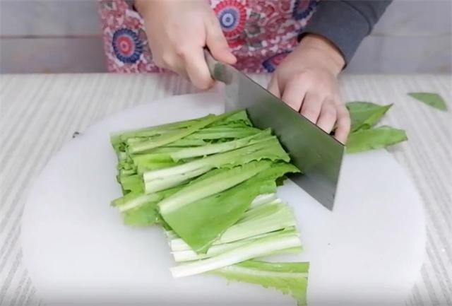 1.今天给大家分享一道油麦菜新吃法——蒜汁油麦菜。准备一把油麦菜,洗净之后去根,再切成长段。