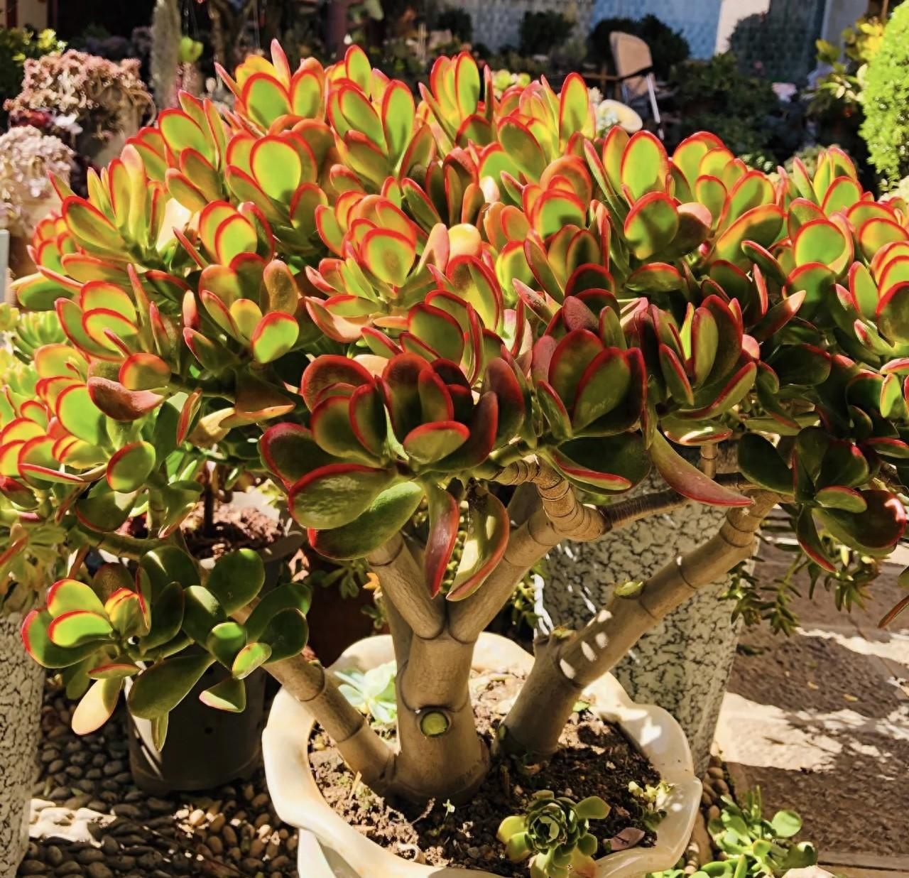 因此,平时你养护玉树,也是非常省心的,不需要过多的关注,偶尔浇点水就能活。但要时常拿起剪刀,做好修剪,它的枝条生长速度快,萌芽能力强,还有顶端优势,不修剪的话,外形不饱满。去除病弱枝,密集枝,徒长枝等等,以去弱留强为原则,不久之后,形态就会变得圆滚滚。