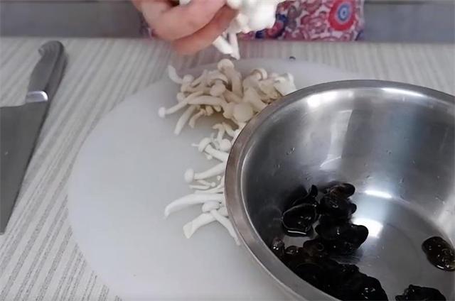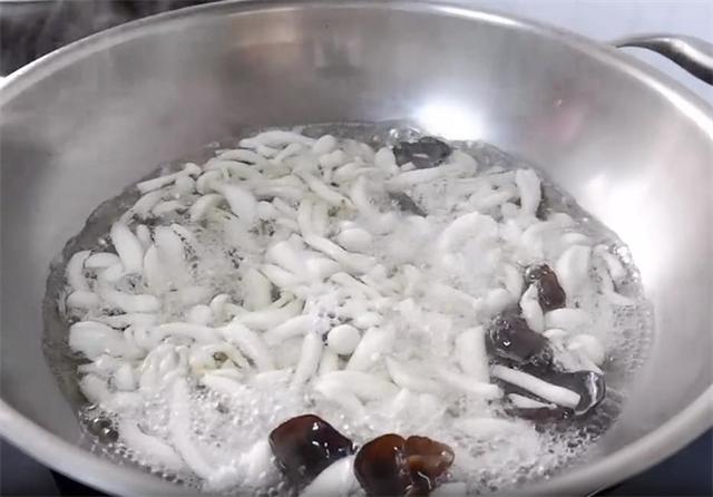 4.接着把白玉菇和木耳焯水,开水下锅煮个五分钟之后捞出。