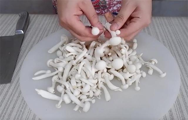 1.今天给大家分享一道家常炒白玉菇。准备多一点的这种白玉菇,冲洗之后去根撕散。