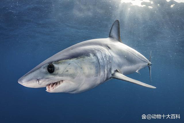 剑鱼,又被称为箭鱼,是热带和亚热带海洋中常见的鱼类之一。它们因上颌向前延伸形成了剑状而得名。剑鱼拥有典型的流线型身体,皮肤光滑,上颌又长又尖,背部的鳍相对较小,嘴也比较扁平,没有腮和腹鳍。剑鱼的颜色多样,整体上鱼背和鱼身呈棕色或偏黑色。当剑鱼向前游泳时,它们强壮有力的尾柄能够产生巨大的推动力,而长矛一般的尖嘴则起到劈水的作用。以每小时130公里的极速前进,剑鱼坚硬的上颌能够将非常厚的船底刺穿! 4、灰鲭鲨(95公里/小时)