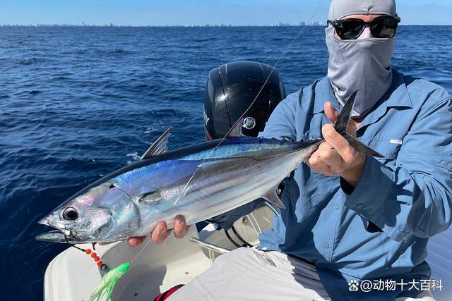 鲣鱼,俗称**鱼,属于鲈形总目、金枪鱼亚目、金枪鱼科的鲣属。它的身体呈纺锤形,拥有蓝色的外观,粗壮而无鳞,体表光滑,尾鳍非常发达。主要特征之一是体侧腹部有数条纵向暗色条纹,背侧则具有线色斑条。鲣鱼广泛分布于全球温热带海域,属于远洋肉食性上层洄游鱼类。它们喜欢集群于冷暖水团交汇的水域,并通常以沙丁鱼等小型鱼类、甲壳类或头足类为食。鲣鱼可以长到76厘米至100厘米,它们流线型的鱼身上有着漂亮的条纹。而且它们的游速可达到每小时64公里! 9、鲯鳅(59.55公里/小时)