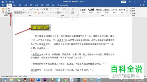 3. 点击之后,我们就可以看到鼠标变成了一个刷子,就说明我们使用成功。然后我们按住鼠标的左键,拖动鼠标将我们想要设置相同格式的文字选中,接下来我们松开鼠标就可以看到格式已经同步了。