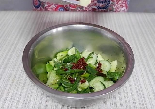 准备食材: 青萝卜、黄瓜、辣椒、大葱、盐、海鲜酱油、香油、辣椒油、熟花生 具体做法: