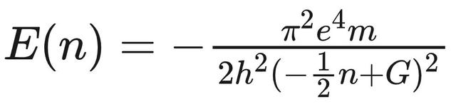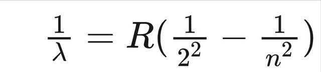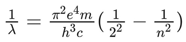 看到这个n²,玻尔一下子就反应了过来。他令常数G=0,然后用E(n)-E(2)=hc/λ,就得到了: