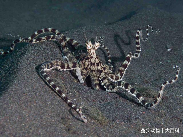 一般而言,普通水母在经历了有性生殖后就会死亡,但是灯塔水母却能够重返水螅型阶段。这个过程理论上没有次数限制,使得灯塔水母能够通过不断的有性繁殖和转分化获得无限的寿命。因此,人们也将其称为"长生不老的水母"。 2、拟态章鱼(任意改变自身颜色和形状) 拟态章鱼是大自然中的伪装高手,它是一种海洋生物。这种柔软的生物能够随意改变自己的颜色和形状,成为众多海洋生物中的顶级模仿者。它通常具有带斑点的褐色体色,能够模拟各种环境和其他海洋生物,如比目鱼和海蛇等。