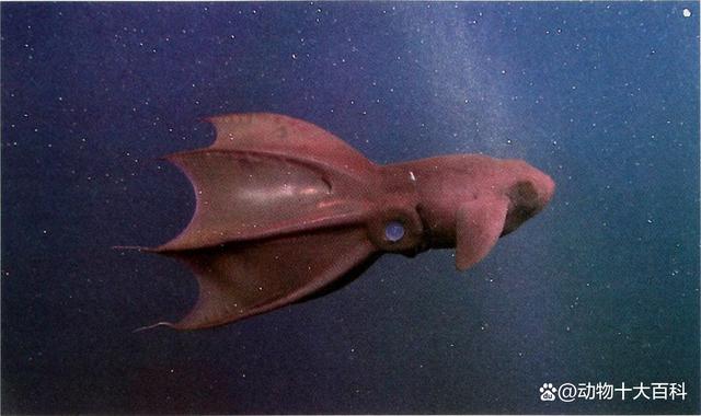 吸血鬼乌贼,又称吸血鬼鱿鱼、吸血鬼章鱼或幽灵蛸。它们仿佛从午夜科幻电影中漫游而来。这种乌贼身上生长着两只巨大的鳍状物,看起来就像一对耳朵一样。而它的体态则更类似于胶状物质,似乎比起鱿鱼或乌贼更像是水母。幽灵蛸是一种发光生物,身体覆盖着发光器官,这使得它们可以自由地发光或熄灭。当它们关闭发光器时,就几乎完全融入所生存在的黑暗环境中,无法被察觉。然而,一旦感知到危险的存在,它们会突然发出亮光,以此迷惑它们的捕食者。
