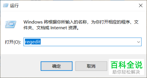 2. 第二步打开【运行】窗口后,根据下图所示,输入【regedit】并点击【确定】选项。