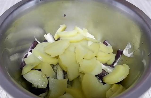 3.然后把土豆和茄子上锅蒸熟,蒸好之后,取出放凉。