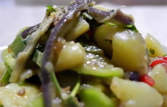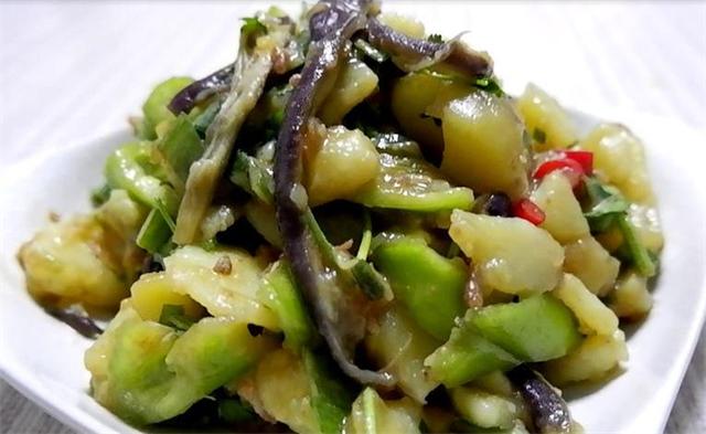 准备食材: 土豆、茄子、青椒、小米辣、葱叶、香菜、调料 具体做法: