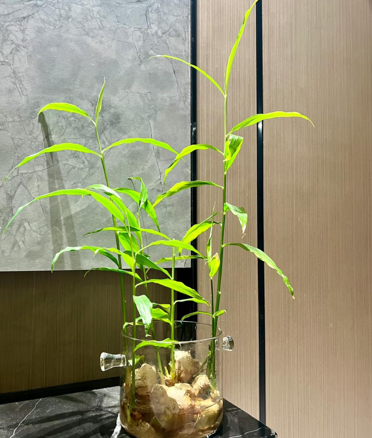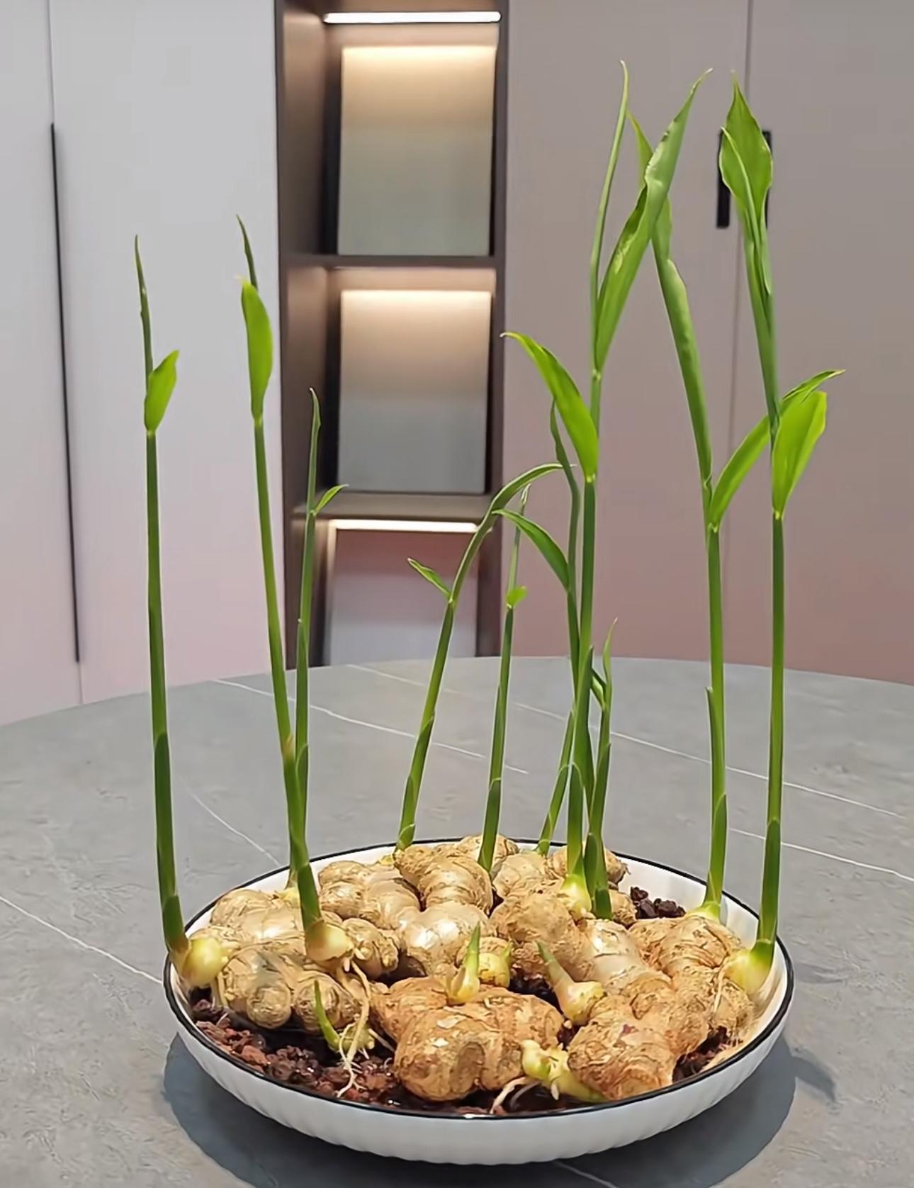 当然也可以直接用浅盘浅水培养,一周左右也可以发芽,慢慢向上生长。 培养的时候要接受充足的光照,多放在朝南的有光的区域,例如桌面窗台等,能帮助合成更多叶绿素,并且促进生长发育,防止叶片发黄。 如果是水培的话,水位不要太高,在盘子里浅浅的放一层水就行了,保证有水即可。 所以不妨看看你家的生姜是否发芽,别扔掉,放在有水的托盘上,就会来一个华丽的变身,实现二次价值,成为你家里独一无二的景观。 |
