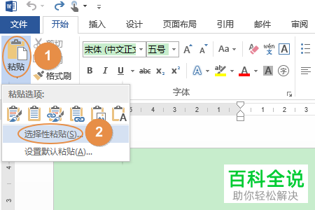 2. 第二步,双击或者右击打开Word软件,接着点击页面顶部的文件选项,然后点击弹出窗口中的粘贴选项,并点击选择性粘贴选项。